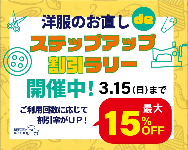 「洋服のお直し de ステップアップ割引ラリー」